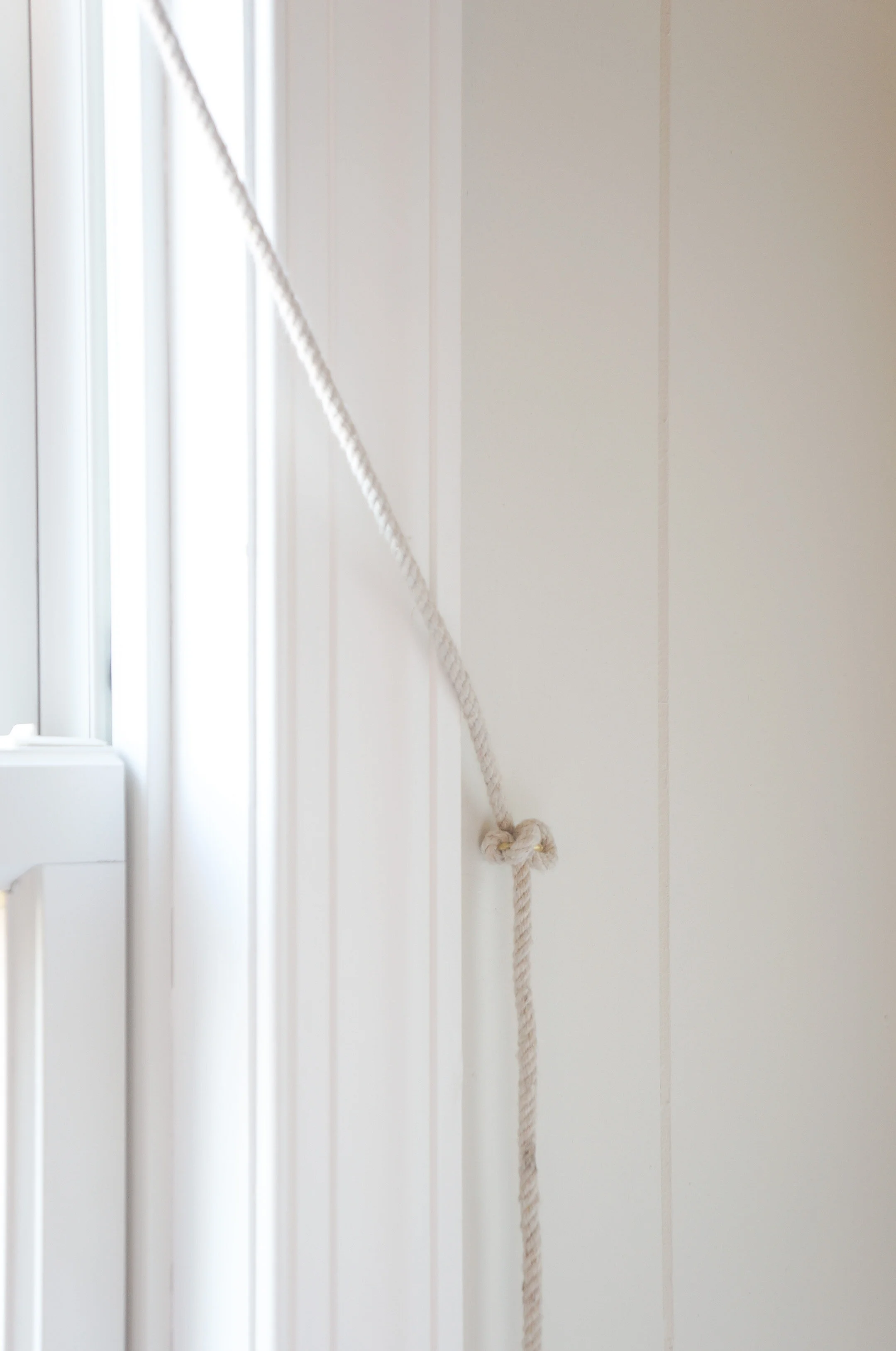 I also made a tie back for the long pull string with a brass cup hook.
